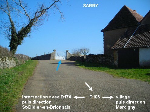 Le cimetière est situé en périphérie du village, à 180 mètres de la D108 et à 380 mètres de l'intersection D108 / D174. Sur la D108 en provenance de Saint-Didier-en-Brionnais, 200 mètres après l'intersection à gauche avec la D174 direction Briant (à cet endroit, on voit sur la droite un grand plan d'eau et une immense bâtisse), au niveau du panneau au début du village tourner à gauche (attention : virage en épingle !) et grimper jusqu'au cimetière (il n'y a pas de fléchage) qui est implanté côté droit. Le robinet est à l'intérieur du cimetière, à droite du portail.