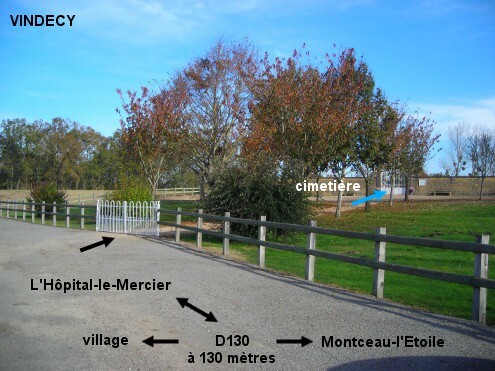 Le cimetière est implanté à l'extérieur du village, à 130 mètres de la D130 en direction de Montceau-l'Étoile. En provenance du centre du village, sur la D130 en direction de Montceau-l'Étoile, juste après le panneau de fin de village, tourner à gauche dans la petite route (en sens inverse il y a une flèche indiquant le cimetière). Le cimetière est implanté quelques mètres plus loin côté droit, derrière une esplanade clôturée. Franchir le premier portail, parcourir l'allée en terre battue de 40 mètres, entrer dans l'enceinte du cimetière, le robinet est à l'intérieur du cimetière à gauche de ce deuxième portail.