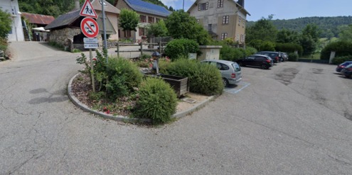 Fontaine avec un bassin, à l'entrée gauche du parking