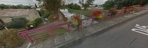 Au niveau du pont Av. Leon Brun, emprunter la route qui longe la canal et se diriger sous le pont, il y a WC et fontaine juste à côté.
