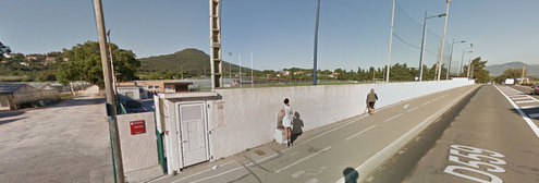 La fontaine se trouve le long de la piste cyclable, au niveau du stade de rugby.