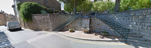 Sur la D23 en face du 12 Rue Félix Fabre. Située au niveau des escaliers qui montent sur la Grand Place.