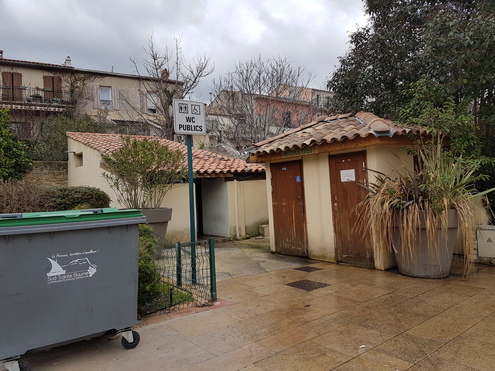 Toilettes publiques sur l’Esplanade Charles De Gaulle, à l’angle de la place, entre la Poste et l’Office du Tourisme.