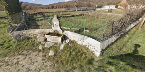Source qui coule dans une fontaine située au bord de la route