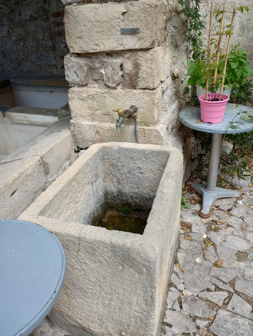 Robinet d'eau potable à gauche de la Fontaine des Mascarons.