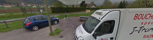 La borne se trouve le long de la voie verte, à une intersection avec la route, près d'une table de picnic.